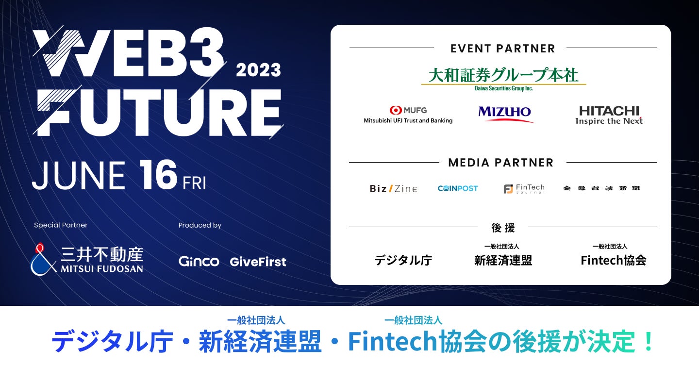 後援イベントのお知らせです。2023年6月16日(金)、Web3 Future 2023が開催されます。