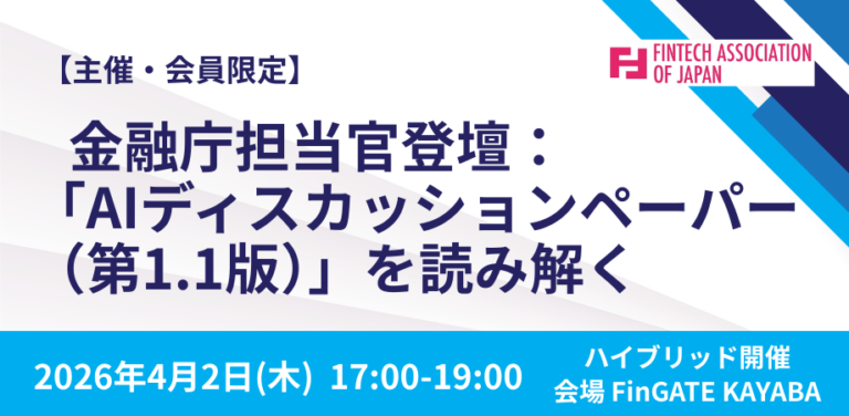 【主催/会員限定】4/2(木)金融庁担当官登壇:「AIディスカッションペーパー(…
