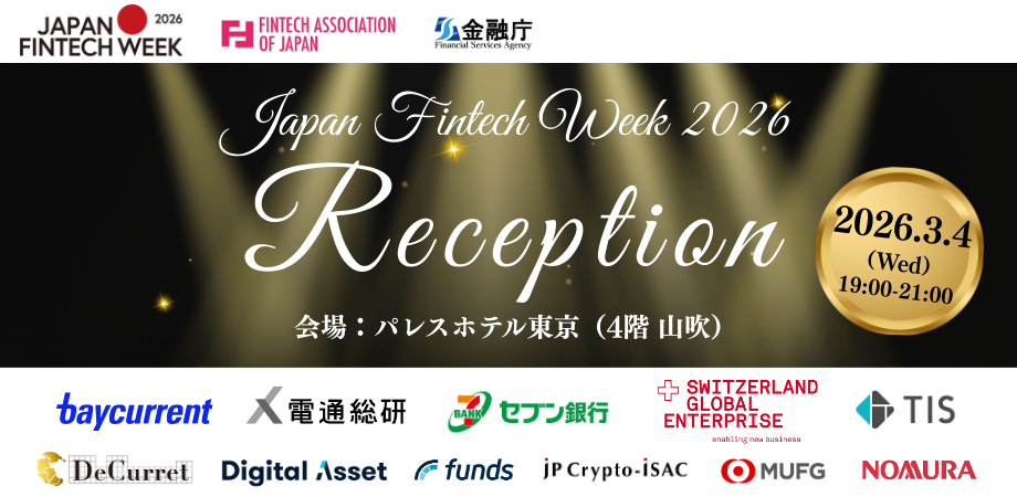 2026年3月4日(水)19時より、金融庁との共催イベント「Japan Fintech Week 2026 Reception」を開催いたします。