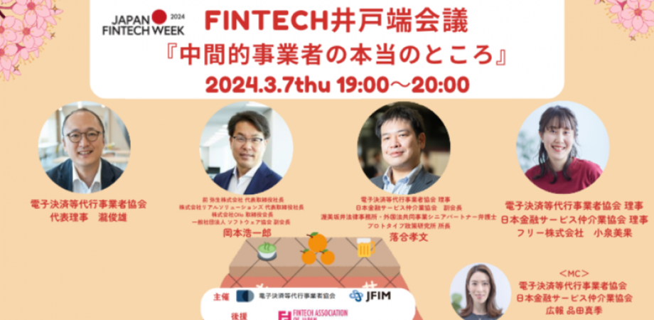 そこで今回の「Fintech井戸端会議『中間的事業者の本当のところ』」では、各種制度成立期から、実際に参入・事業運営を行ってきた業界団体や民間企業の立場から参入前後の思いを語ります。